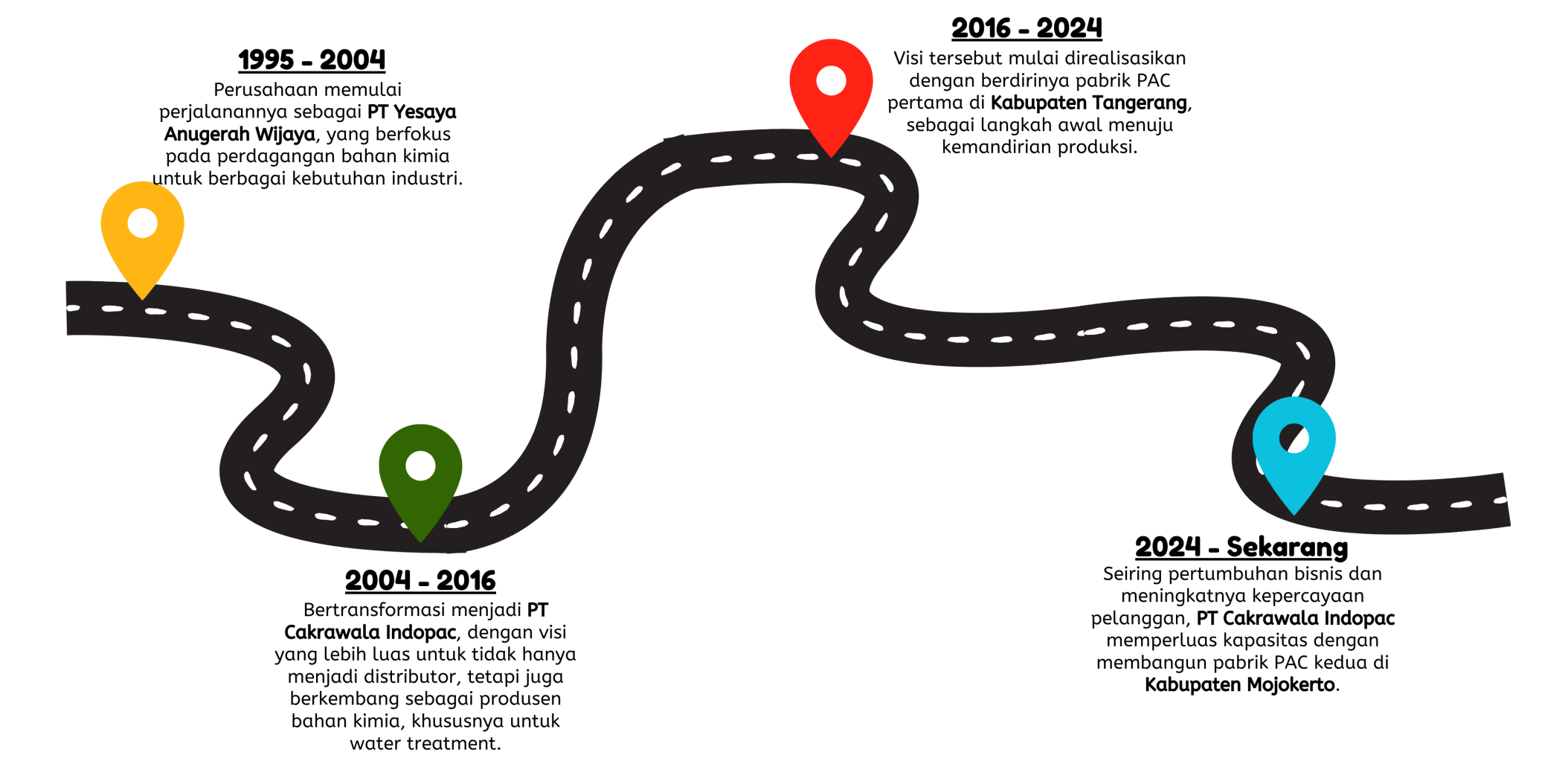 Perjalanan kami tidak terjadi secara instan, dibangun melalui proses panjang, langkah-langkah berani, serta keputusan strategis yang konsisten dari waktu ke waktu. Selama lebih dari 30 tahun beroperasi, PT Cakrawala Indopac ini telah melalui berbagai fase penting, dimulai dari perannya sebagai distributor hingga kini berkembang menjadi produsen yang mandiri.
